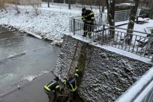 Im Auftrag der Gemeinde rückte die FF St. Florian am 8. Jänner zum Ipfbach aus, um einige Objekte aus dem Gewässer zu entfernen.