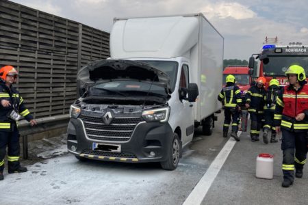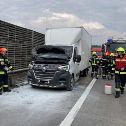 Während der Anfahrt der Einsatzfahrzeuge wurde der Brand durch einen aufmerksamen vorbeifahrenden LKW-Fahrer noch in der Entstehungsphase mit einem Feuerlöscher erfolgreich eingedämmt. Es waren somit keine Löschmaßnahmen mehr zu setzen. Der ausgetretene Kraftstoff wurde mittels Ölbindemittel gebunden.