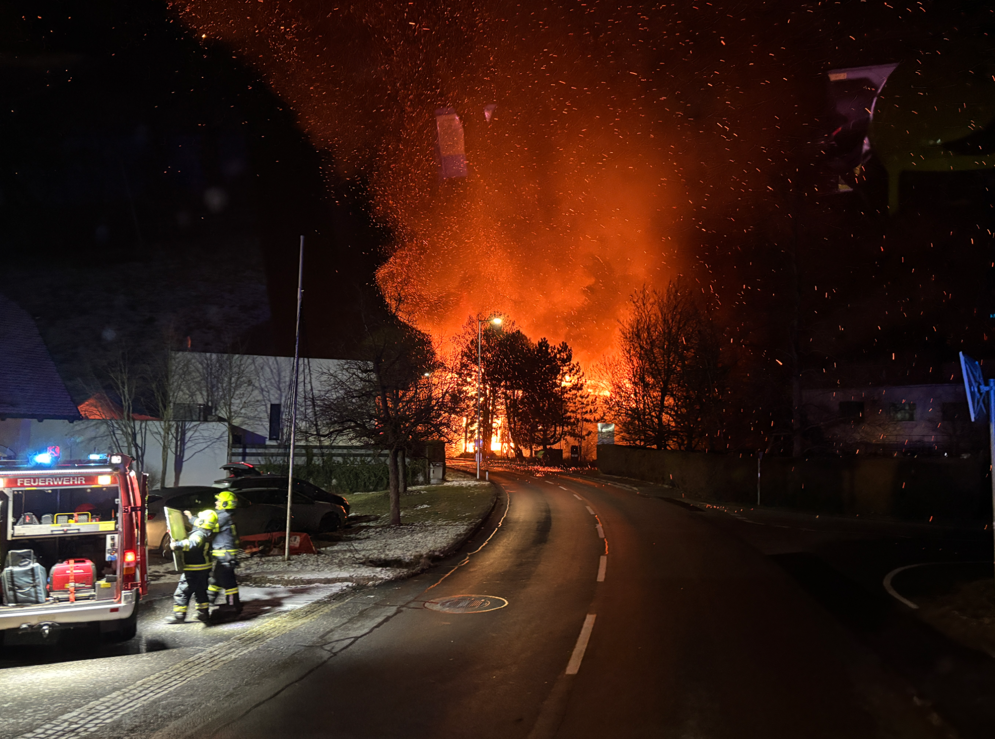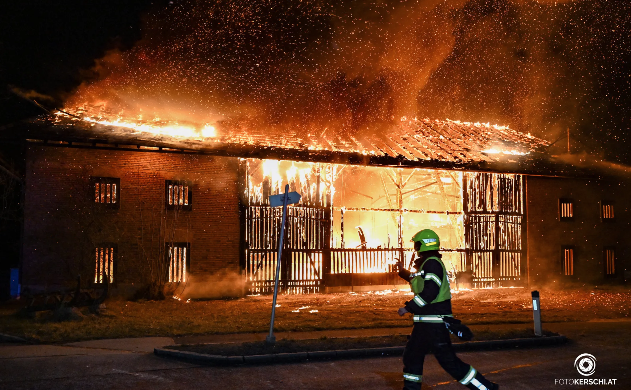 Um kurz nach Mitternacht heulten in St. Florian die Sirenen. Der Wirtschaftstrakt eines Bauernhauses im Ortsteil Rohrbach stand in Brand – der Feuerschein war von weitem ersichtlich.