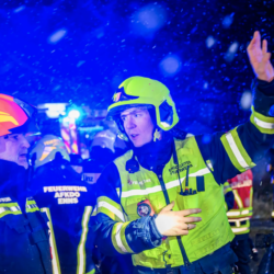 Eine weitere Herausforderung stellte das aufgrund der eisigen Temperaturen sich bildende Glatteis an der Einsatzstelle dar. Mehrere Bauhofmitarbeiter sorgten mit ihrem Streudienst dafür, dass die Einsatzkräfte den Einsatz sicher absolvieren konnten.