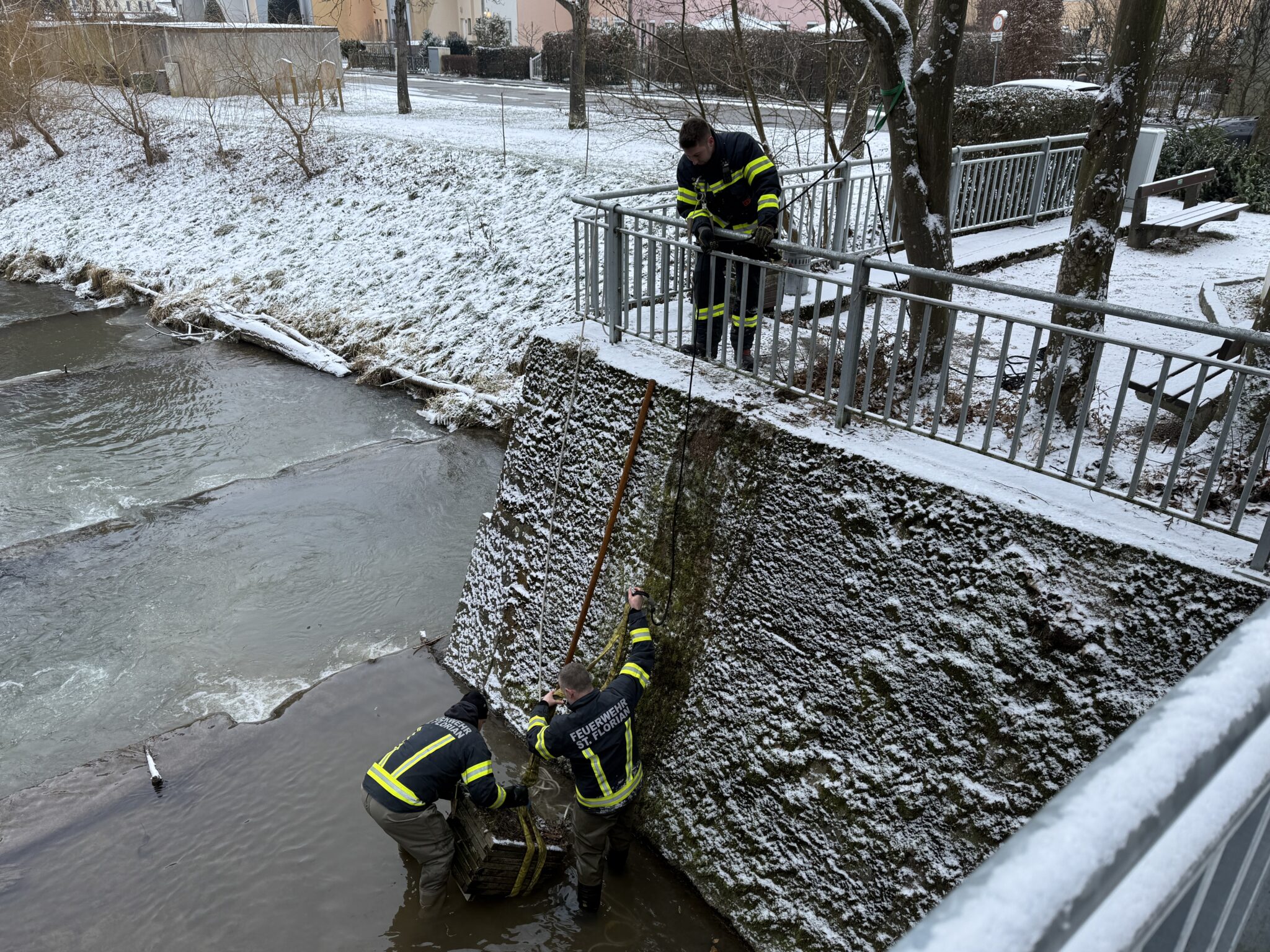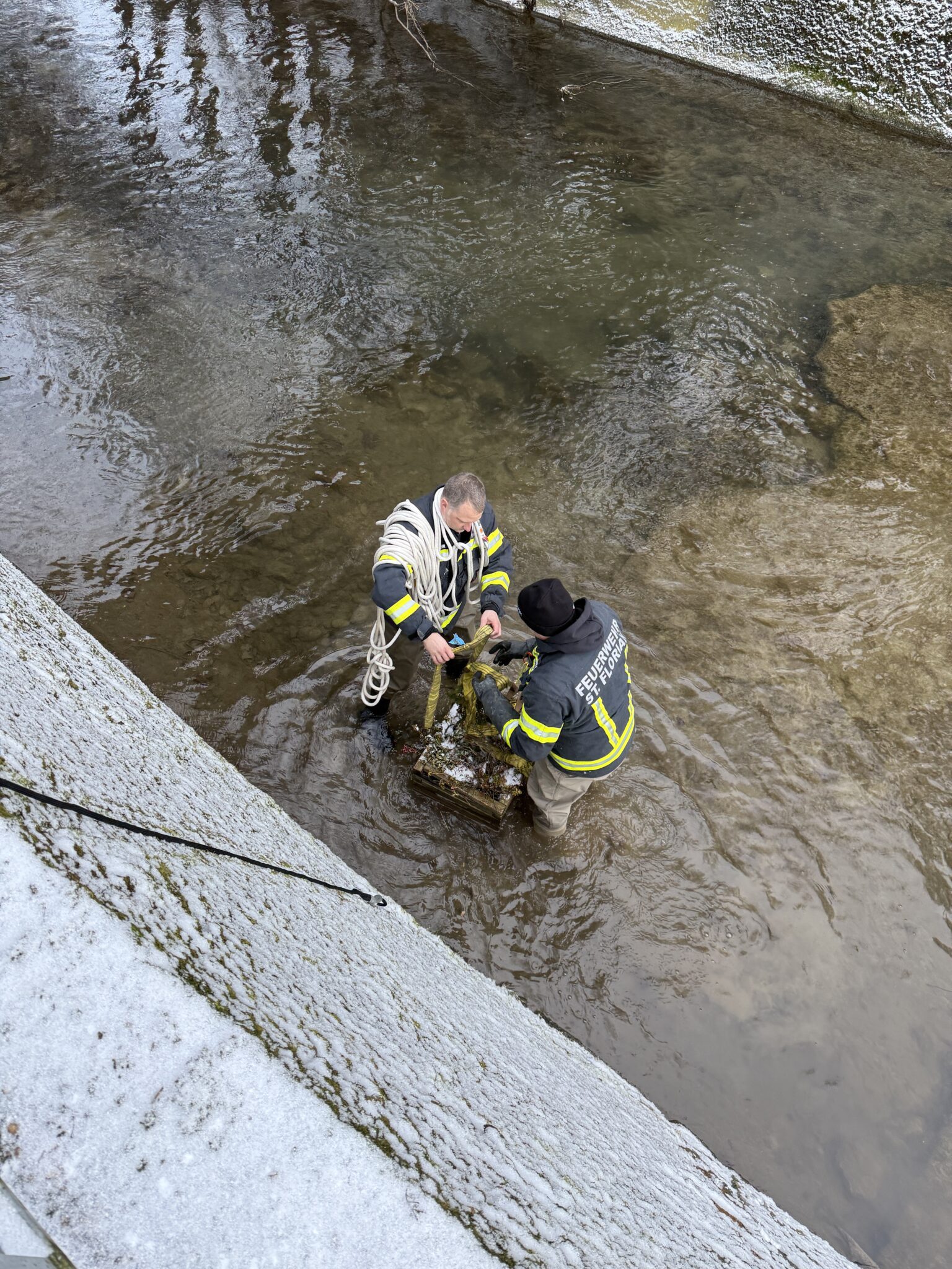 Im Auftrag der Gemeinde rückte die FF St. Florian am 8. Jänner zum Ipfbach aus, um einige Objekte aus dem Gewässer zu entfernen.