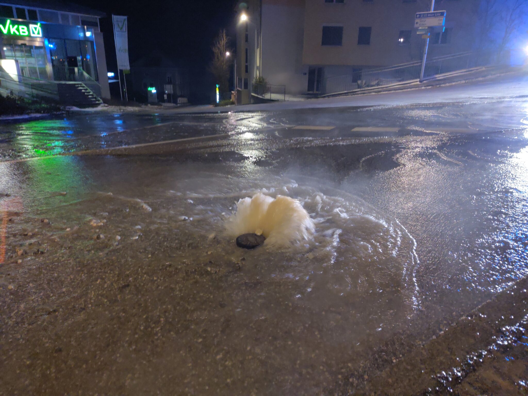Am Samstag, den 10. Jänner 2026, wurde die FF St. Florian um 02:08 Uhr zu einem unkontrollierten Wasseraustritt im Kreuzungsbereich Linzer Straße / Thannstraße gerufen.