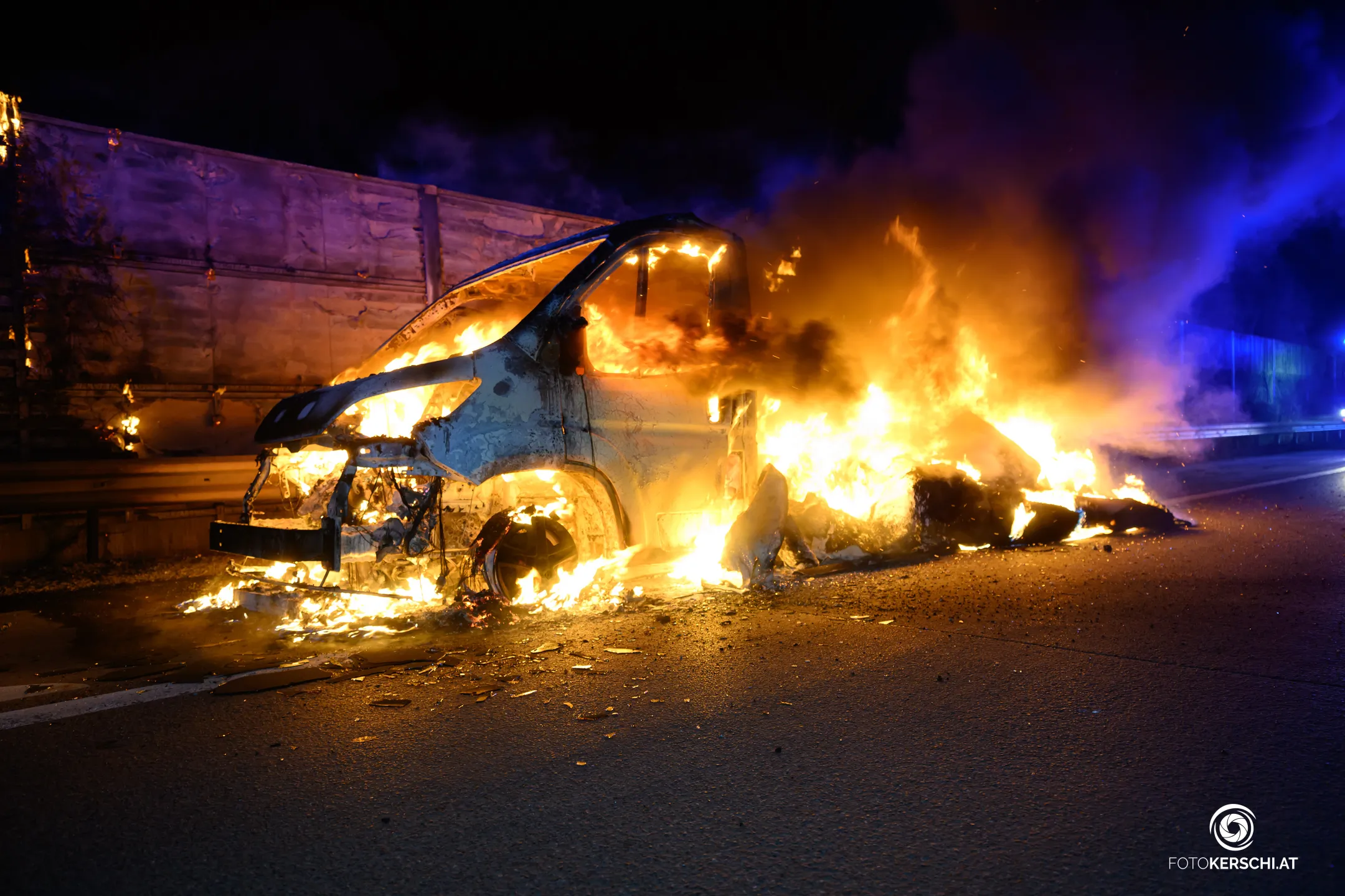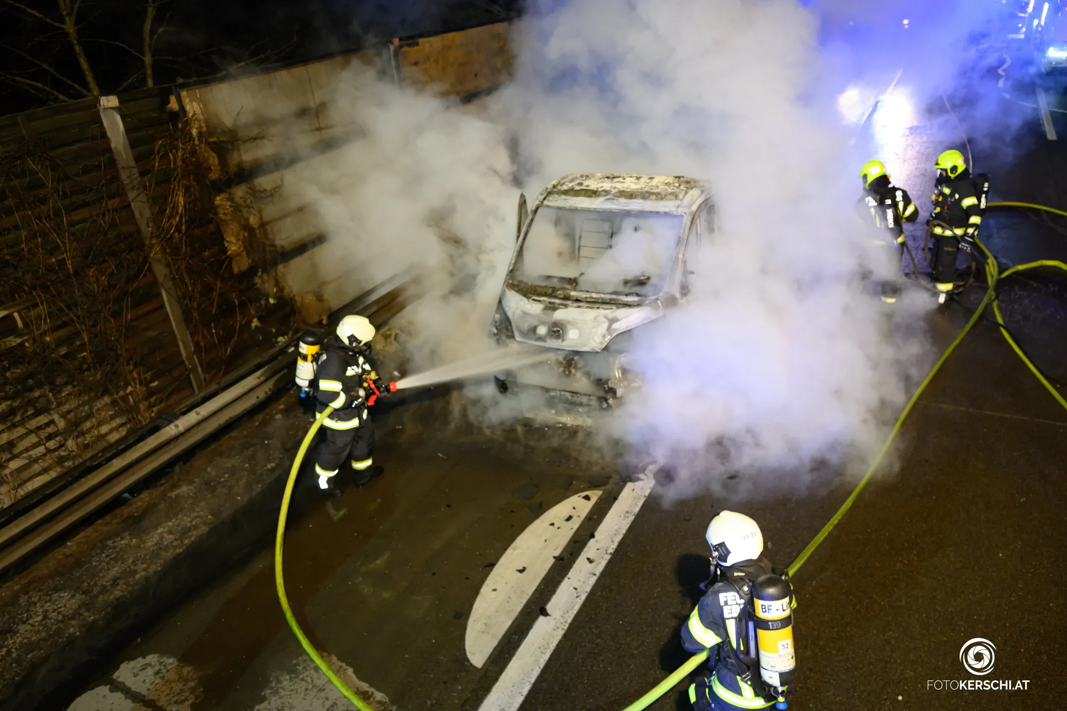 Auch die angrenzende Lärmschutzwand fing Feuer, konnte aber auch rasch gelöscht werden.