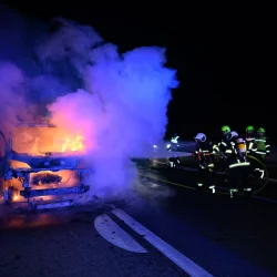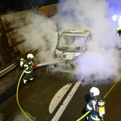 Beim Eintreffen der Einsatzkräfte stand der Pferdetransporter bereits in Vollbrand. Die Feuerwehr begann umgehend mit der Brandbekämpfung unter schwerem Atemschutz. Trotz des raschen Eingreifens konnte das im Fahrzeug befindliche Pferd nicht mehr gerettet werden und verendete infolge des Brandes.
