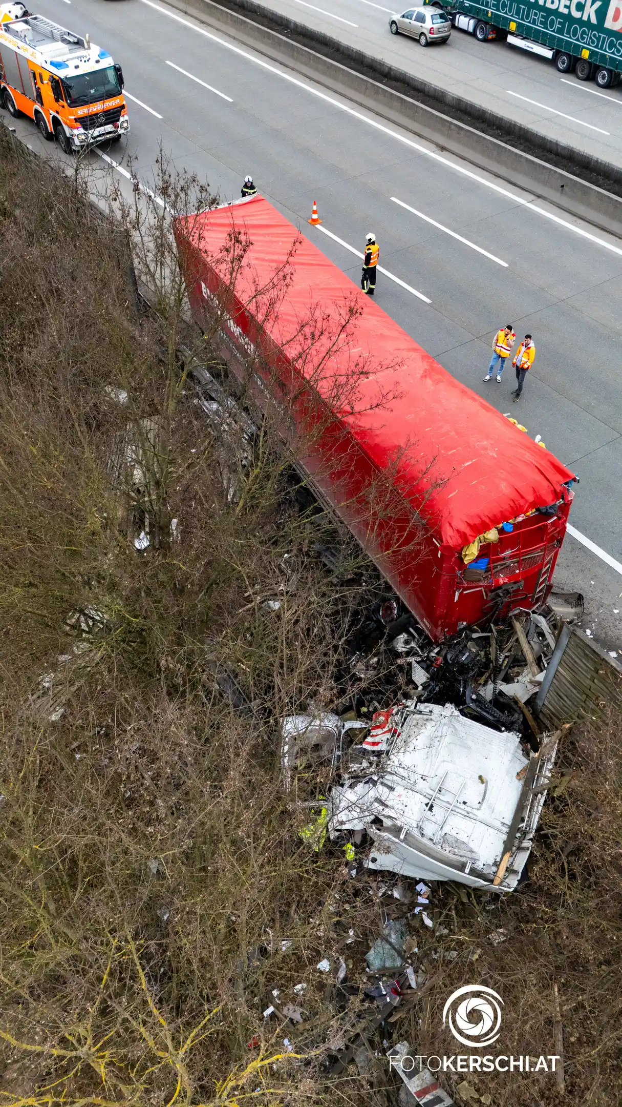 Am 9. Februar 2026 gegen 13 Uhr lenkte ein LKW-Lenker aus Wels sein Sattelkraftfahrzeug auf der A1 in Fahrtrichtung Wien. Im Bereich des Straßenkilometers 164,025 dürfte dieser einen Reifendefekt am Sattelzugfahrzeug gehabt haben und verlor dabei die Kontrolle über sein Fahrzeug.