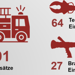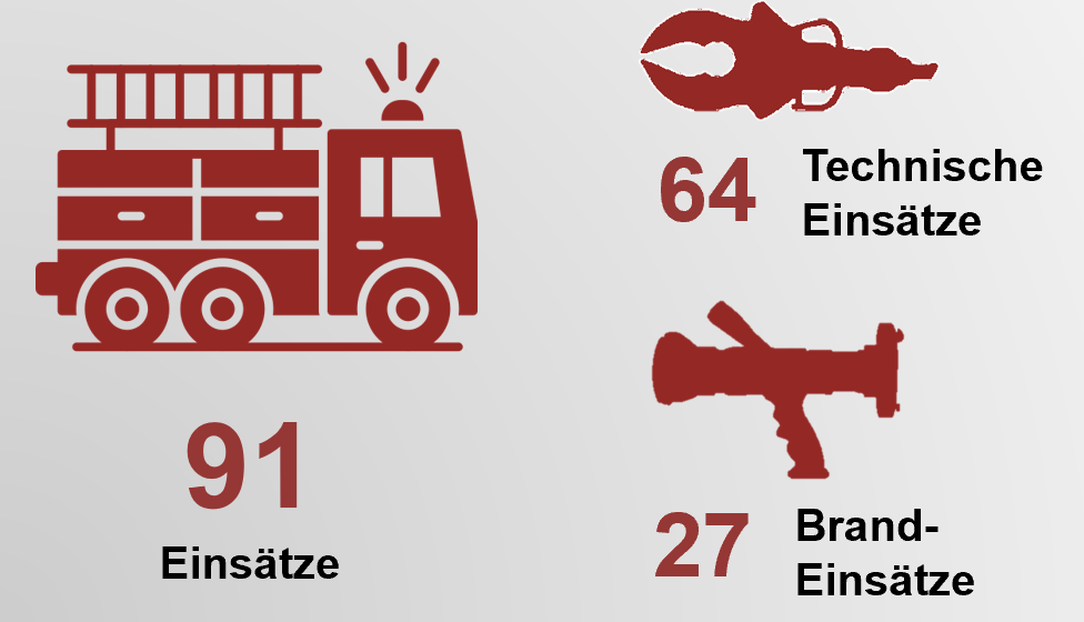 - 91 Einsätze im Jahr 2025 (davon 64 technische Einsätze und 27 Brandeinsätze).