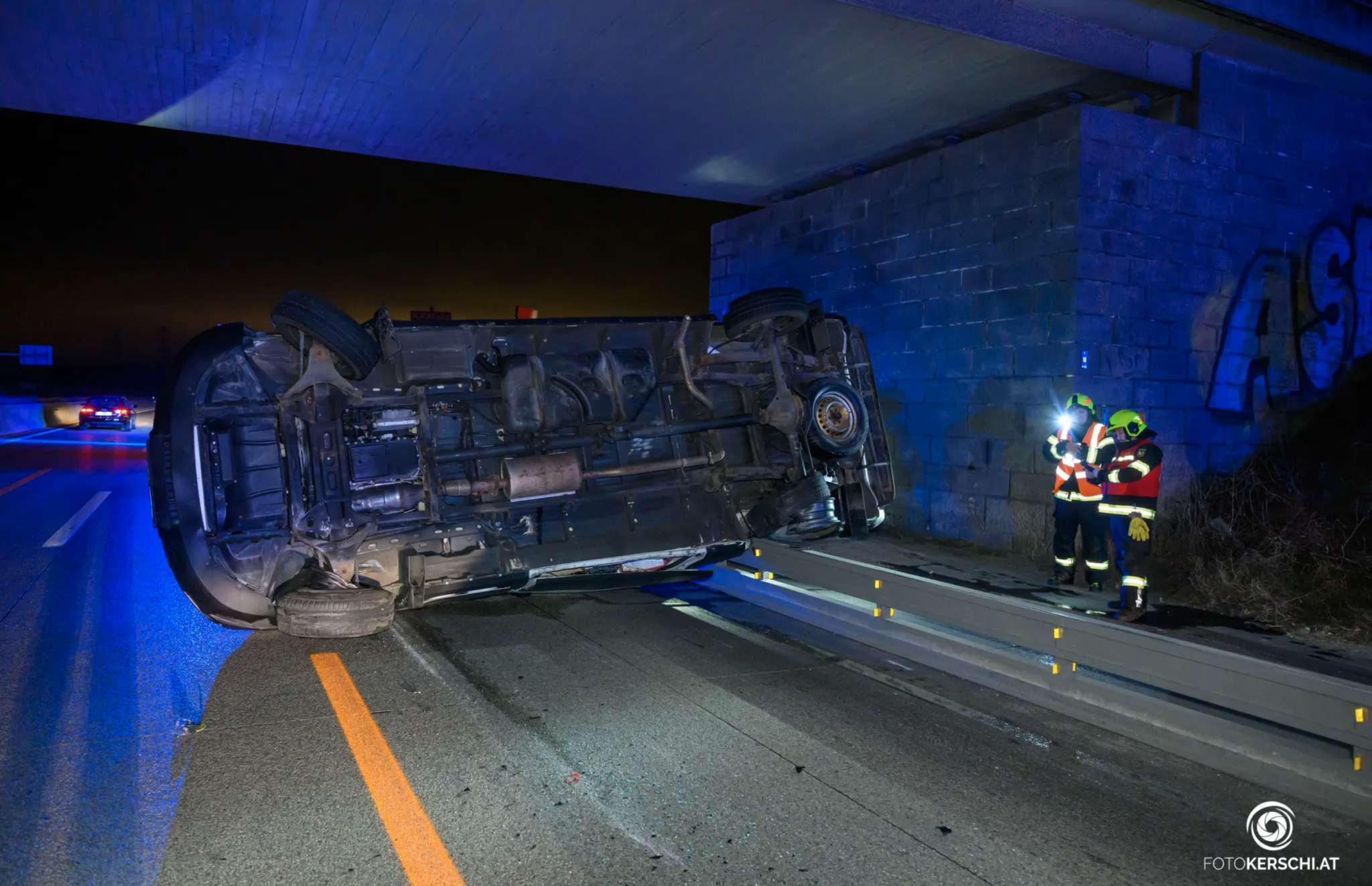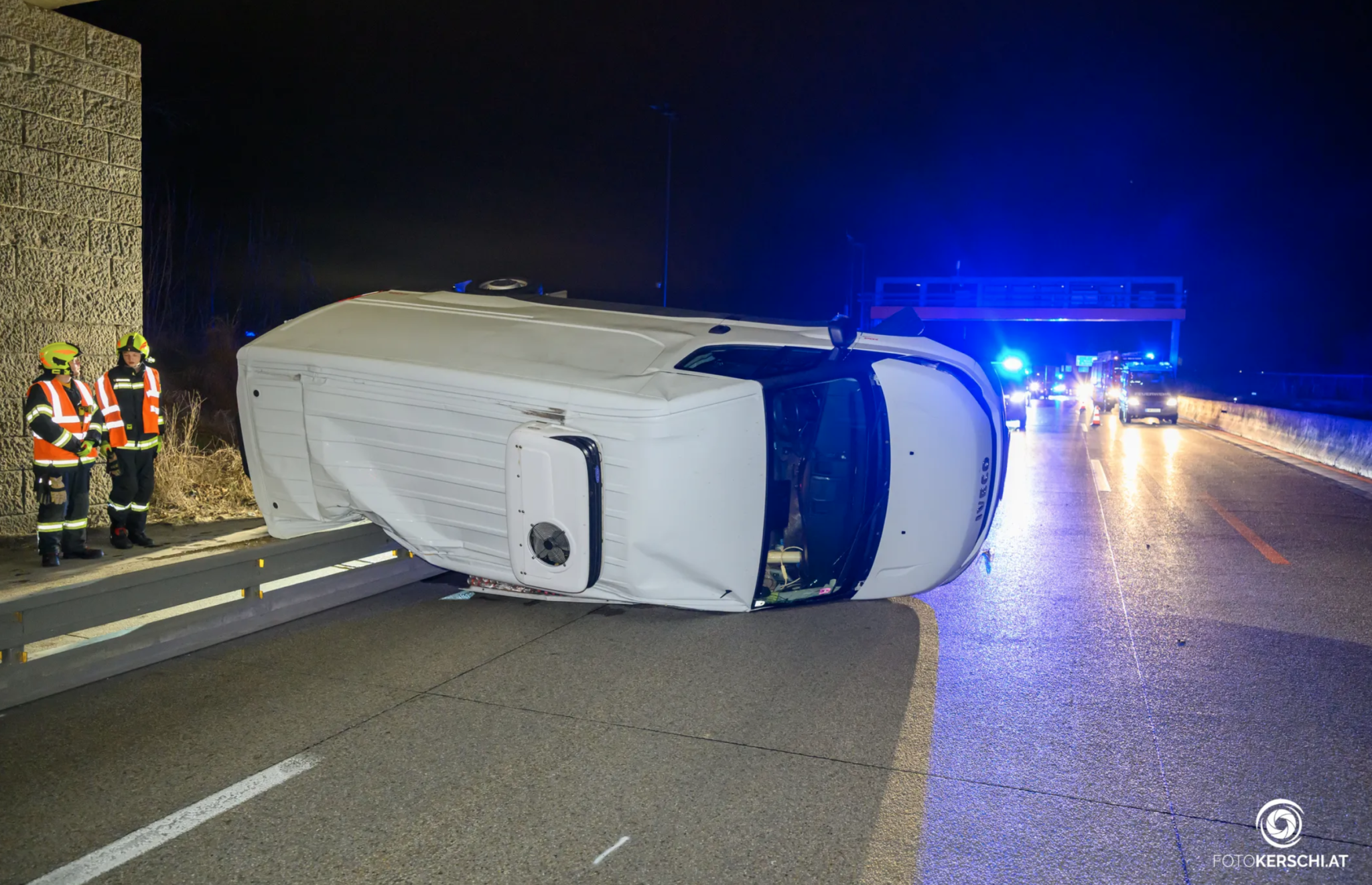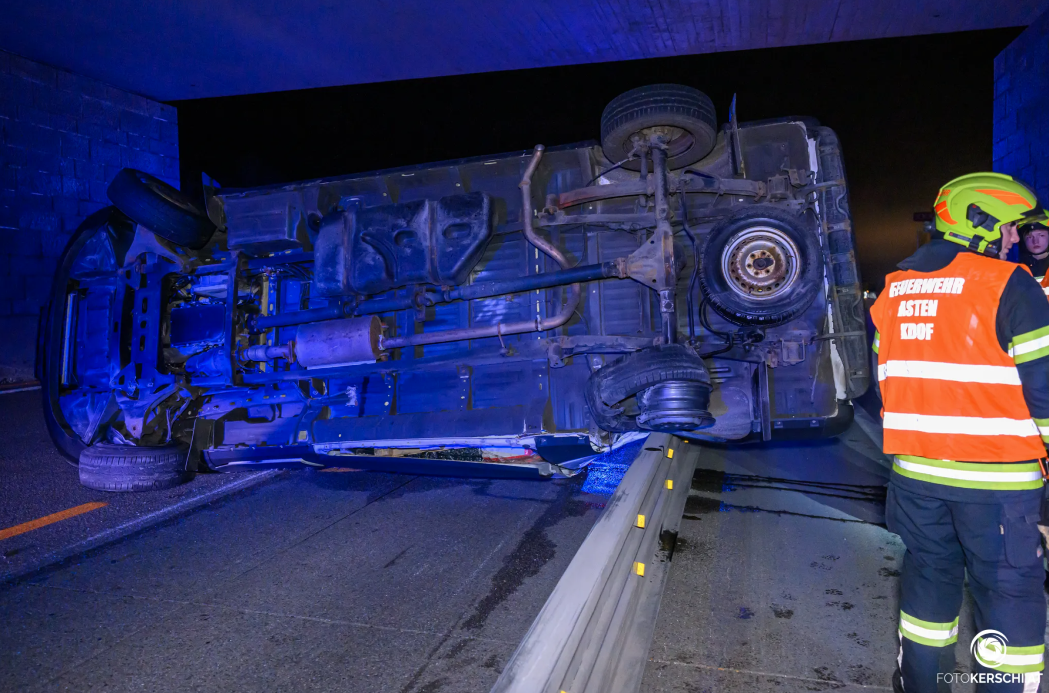 Um kurz vor 2 Uhr nachts am Samstag, den 15. März, wurden die Freiwilligen Feuerwehren aus Asten und St. Florian auf die A1 in Fahrtrichtung Salzburg alarmiert. Ein Kleintransporter verunfallte und kam in Seitenlage zum Liegen.