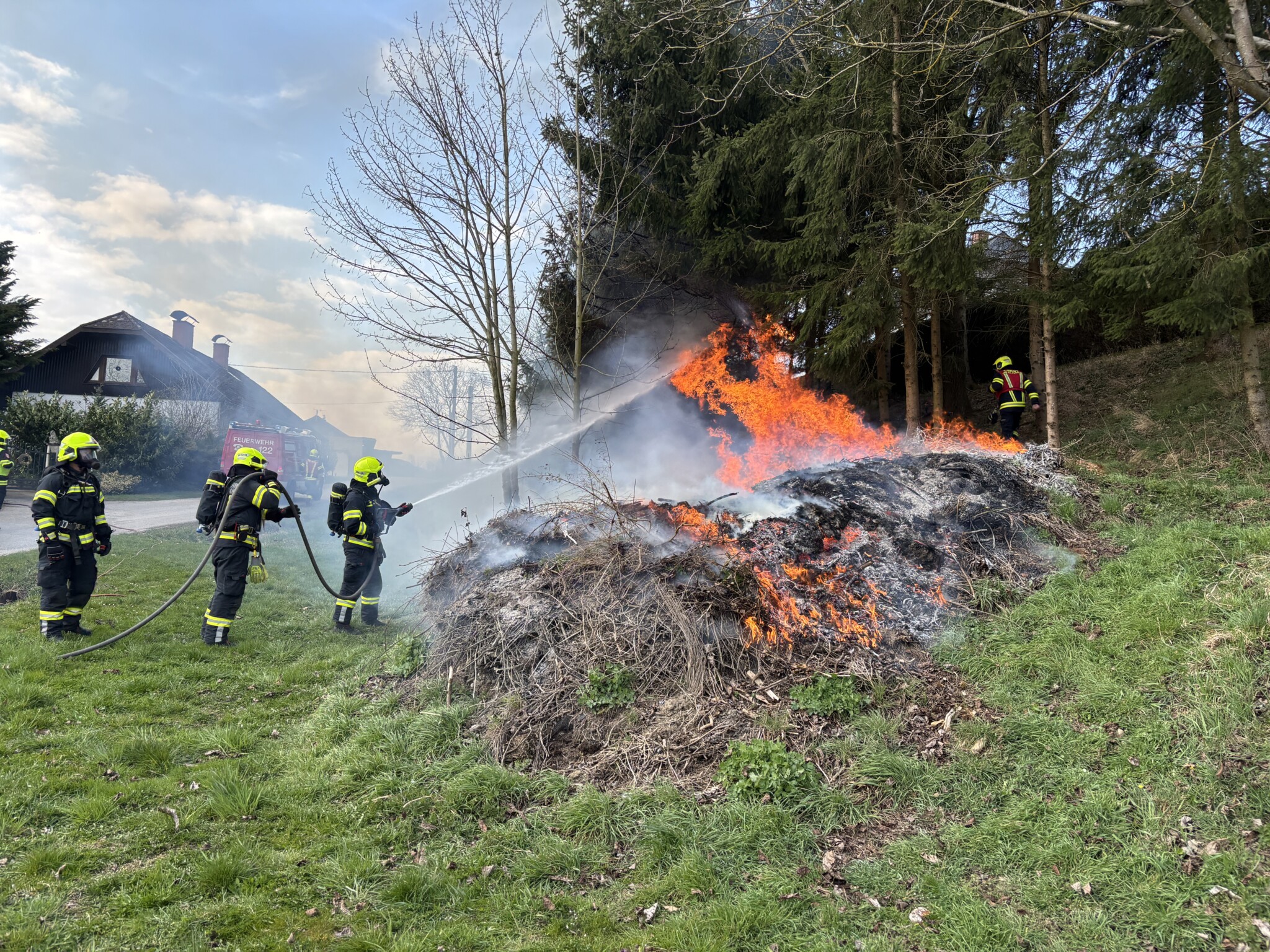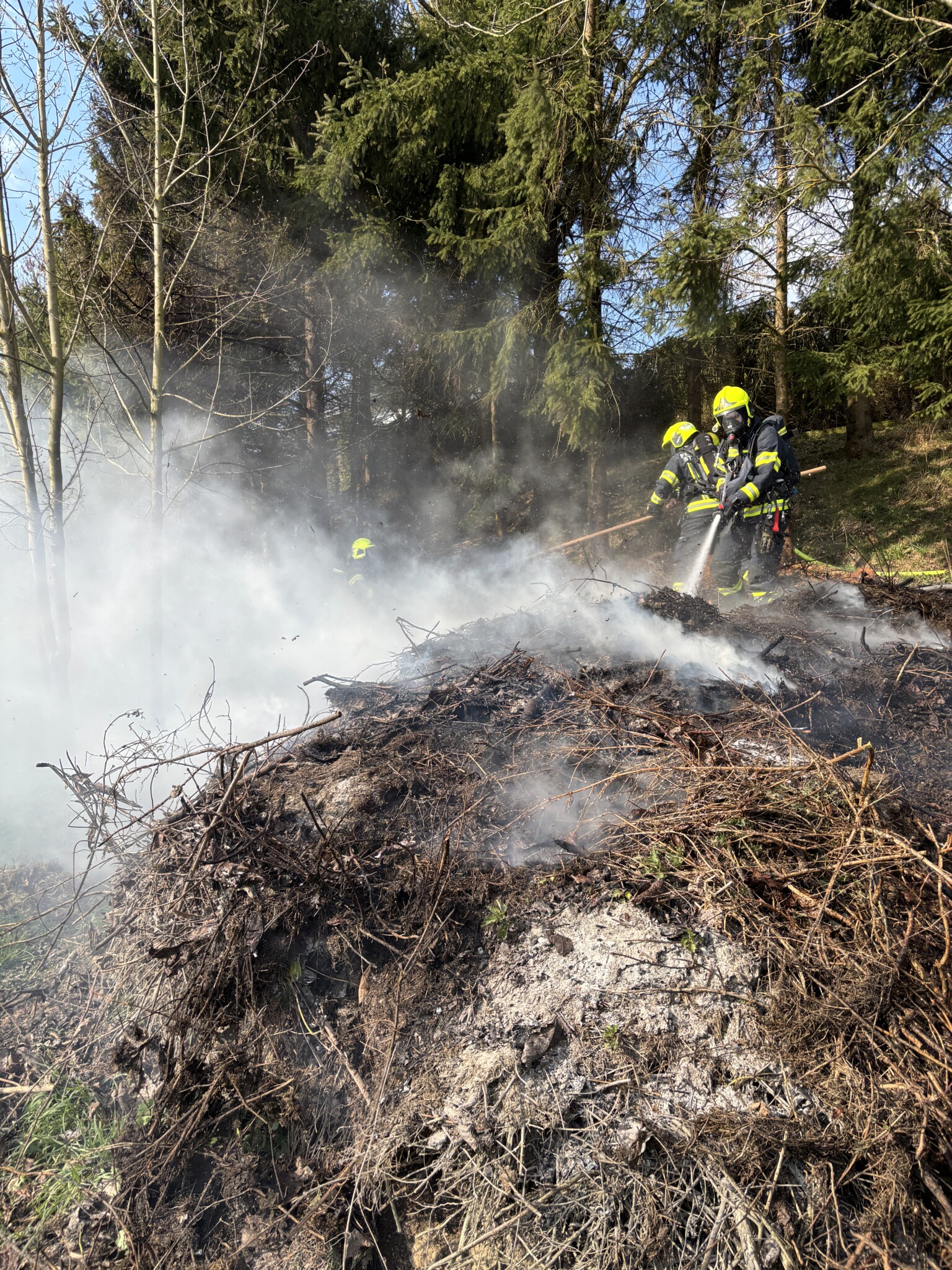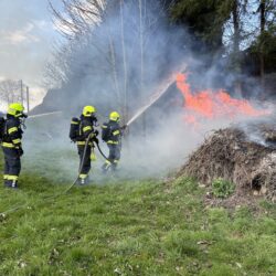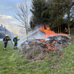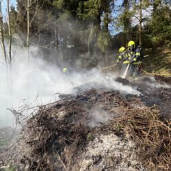 Durch den raschen Einsatz von zwei Löschleitungen und einem Kleinlöschgerät konnte die Ausbreitung rasch verhindert und der Brand auf den Haufen begrenzt werden. Da an dieser exponierten Stelle keine Löschwasserversorgung gegeben ist, wurde die FF St. Marien nachalarmiert um ausreichend Löschwasser zur Verfügung zu haben.