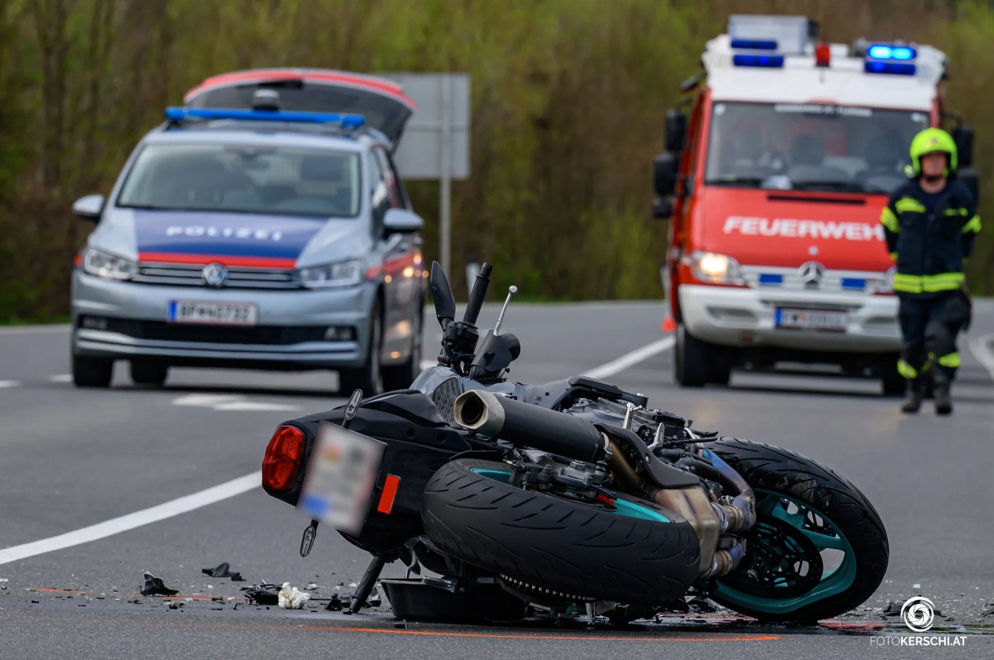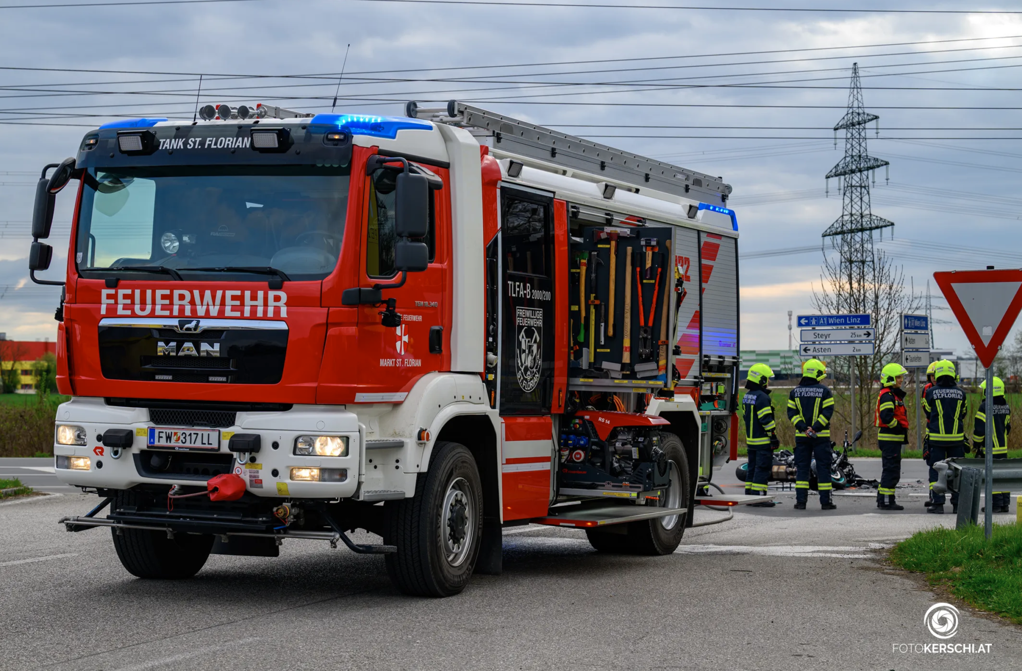 Am Montag um 08:23 Uhr kam es zu einem schweren Verkehrsunfall in St. Florian. Ein Motorradlenker war auf der L566 Höhe Eni Tankstelle mit einem Kleintransporter kollidiert.