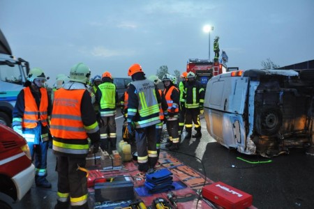 Bereits bei der Anfahrt wurden die Feuerwehren informiert, dass noch eine Person unter einem Fahrzeug eingeklemmt ist. Beim Eintreffen an der Einsatzstelle wurde sofort mit den Vorbereitungsarbeiten für die Rettung der eingeklemmten Person begonnen. Leider konnte der Notarzt nur mehr den Tod der eingeklemmten Person feststellen. Mittels Hebekissen wurde der Klein-LKW angehoben um die Bergung der Person durchführen zu können. Das Fahrzeug wurde aufgestellt und durch ein privates Abschleppunternehmen abgeschleppt. Die Autobahn war in diesem Bereich für ca. zwei Stunden erschwert passierbar.