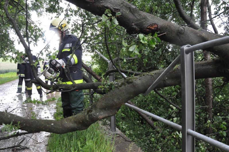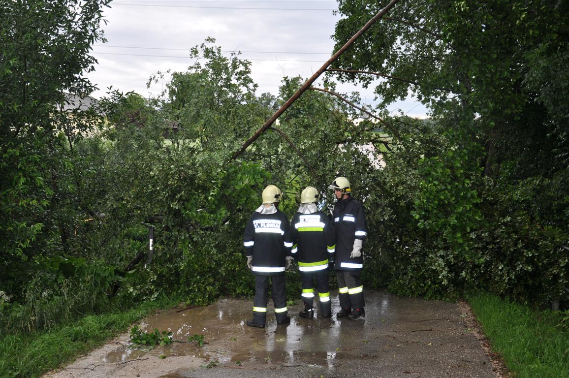 Starker Wind sowie große Niederschlagsmengen verursachten in zahlreichen Gemeinden massive Schäden. Die Feuerwehr St. Florian wurde im Laufe des Abendes zu mehreren umgestürzten Bäumen sowie Überschwemmungen alarmiert. Insgesamt standen 25 Mann drei Stunden im Unwettereinsatz.
