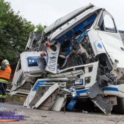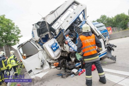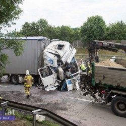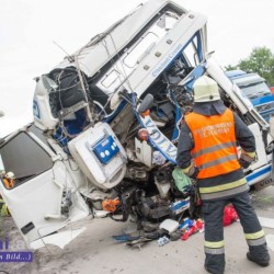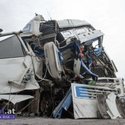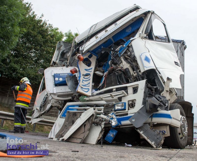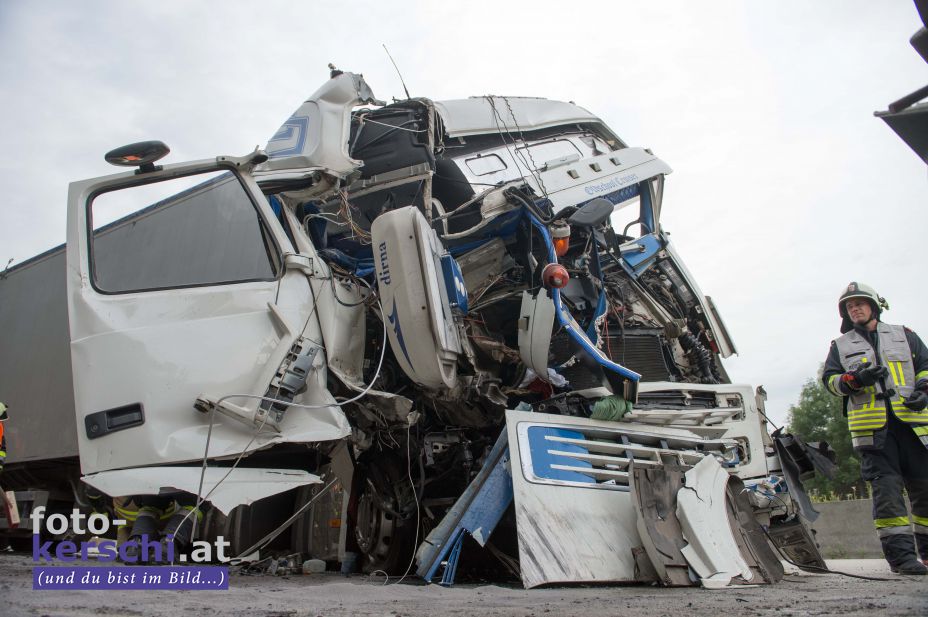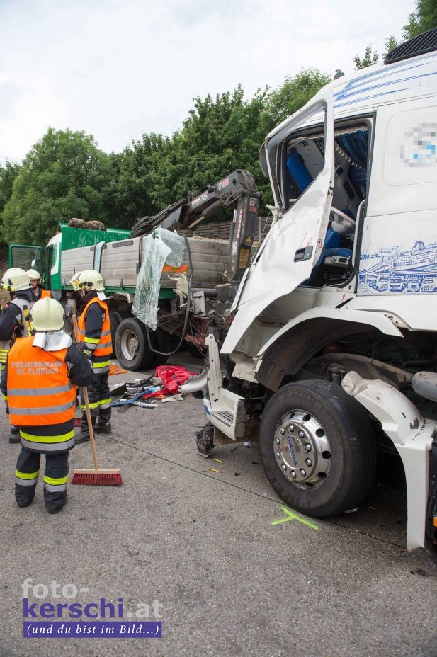 Ein mit rund 24,5 Tonnen Hackschnitzel beladener Lkw fuhr auf einen Schottertransporter auf. Das Führerhaus des Lastwagens wurde bei dem Unfall völlig demoliert. Dennoch konnte sich der Lenker ohne Hilfe der Einsatzkräfte aus dem Lkw befreien. Er wurde in ein Linzer Krankenhaus gebracht.