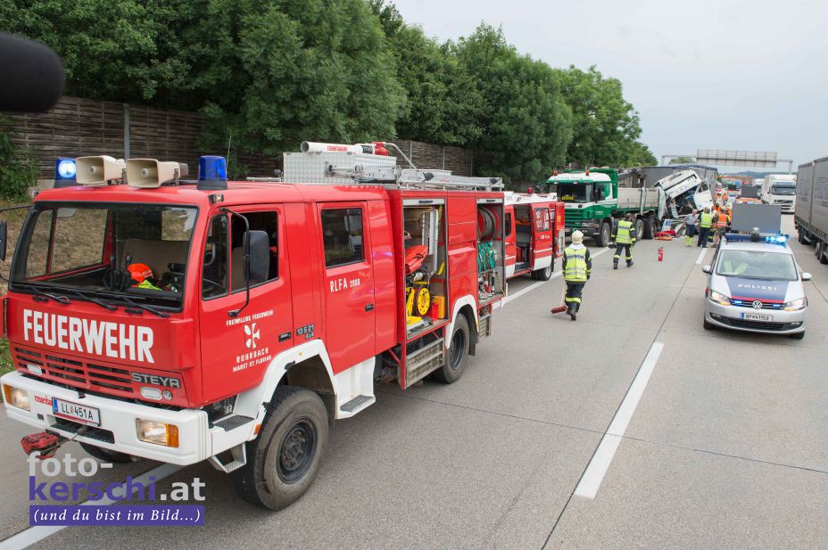 Im Einsatz standen die Berufsfeuerwehr Linz, die FF St. Florian-Markt und die FF Rohrbach bei St. Florian. Die Bergung der Fahrzeuge ist derzeit noch im Gang, die A1 ist in Fahrtrichtung Salzburg nur einspurig befahrbar.