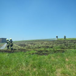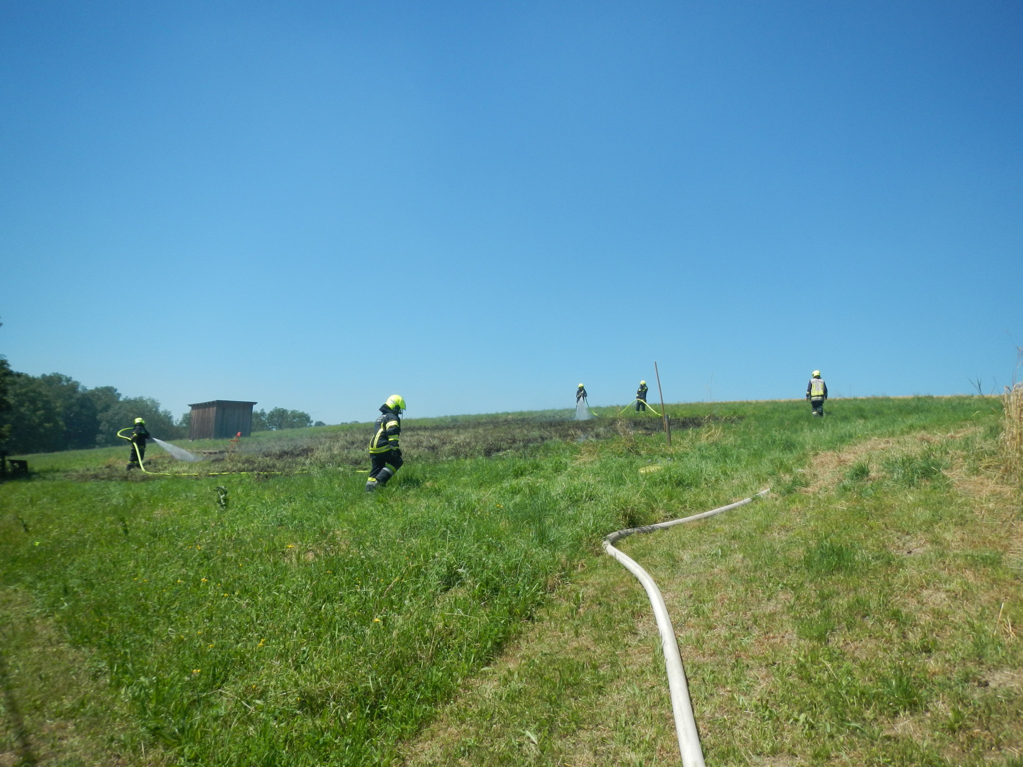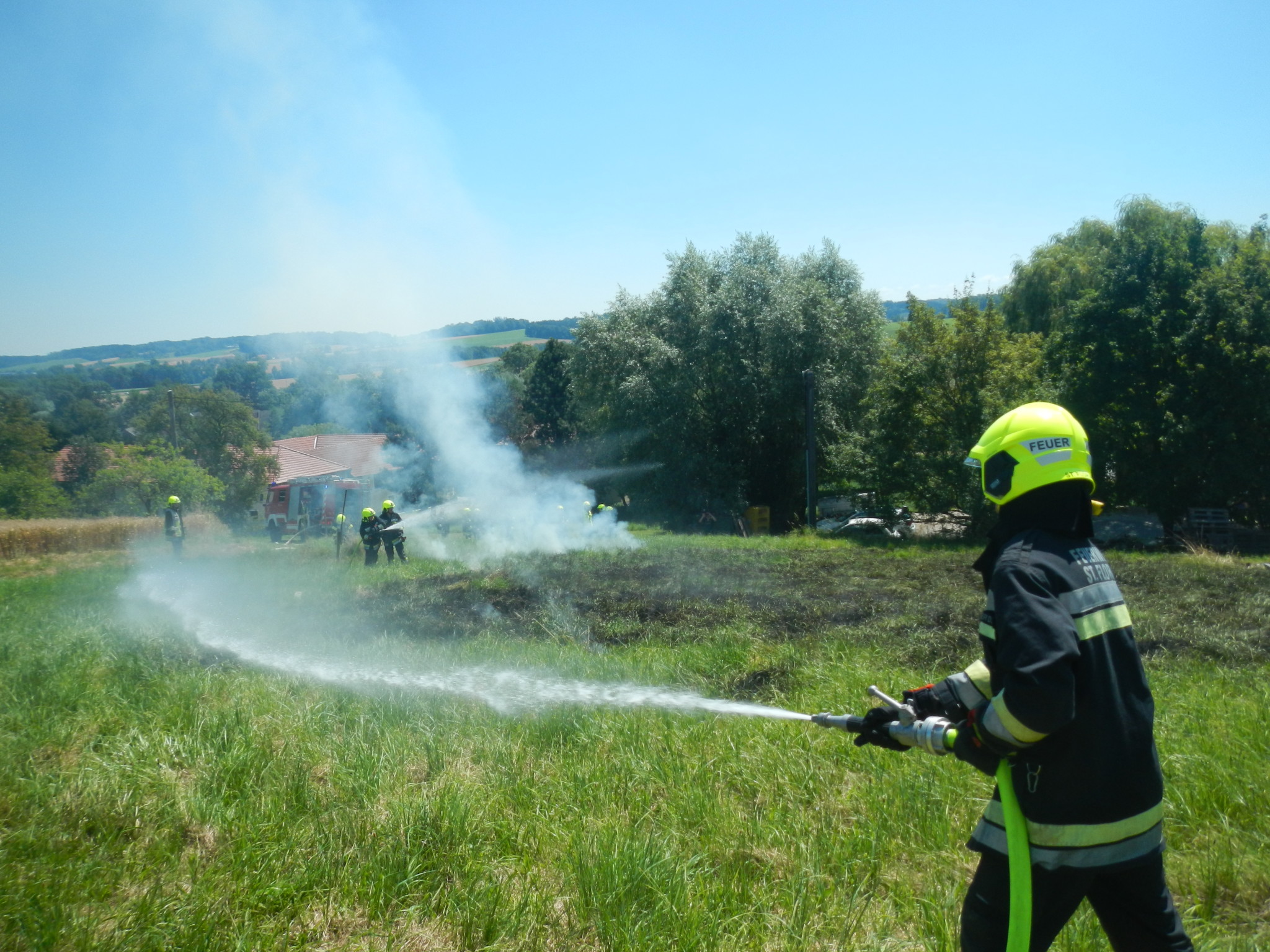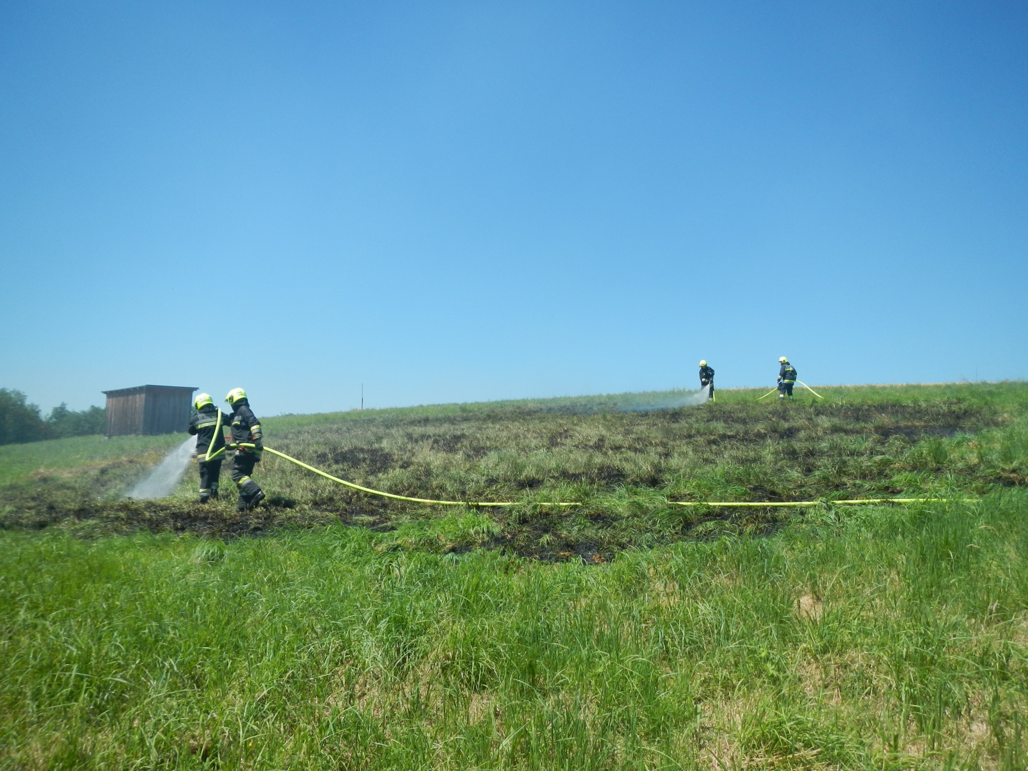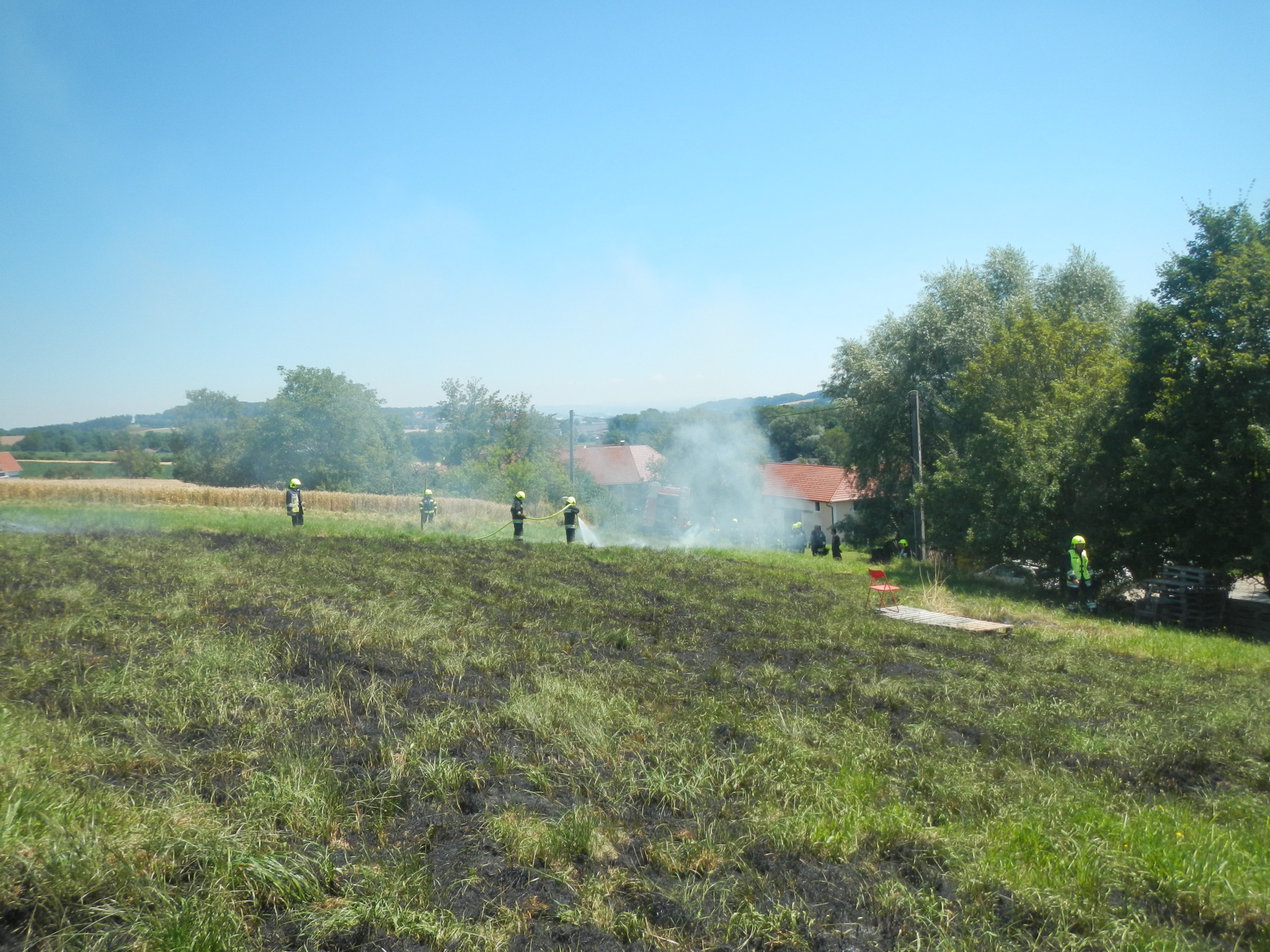 Am Einsatzort eingetroffen standen rund 600 m² Wiese in Brand. Ein Anrainer unternahm bereits erste Löschversuche mit einem Gartenschlauch. Die FF St. Florian konnte den Brand unter Vornahme von zwei C-Rohren rasch ablöschen. Mit der Wärmebildkamera konnten die letzten Glutnester aufgespürt und erstickt werden. Im Einsatz standen 27 Mann mit drei Fahrzeugen (KRF-A, TLF-A 2000, LF-A) für rund 45 Minuten.