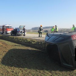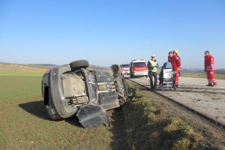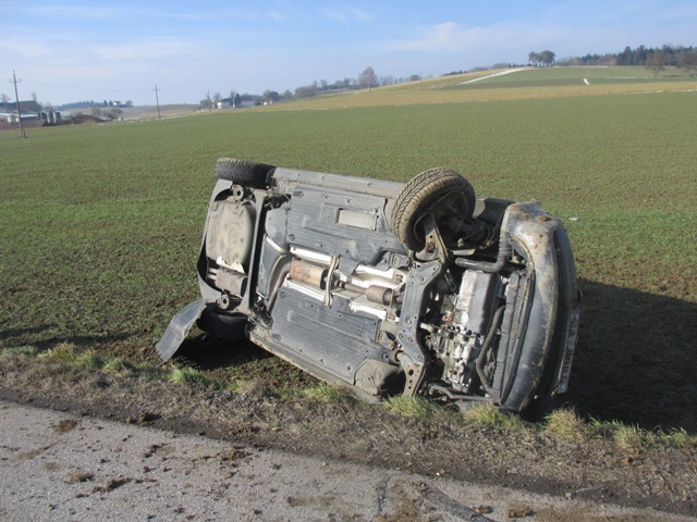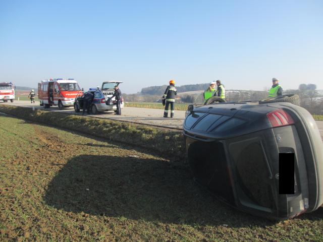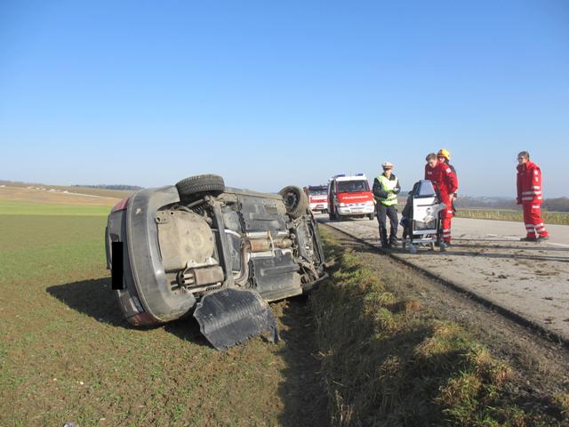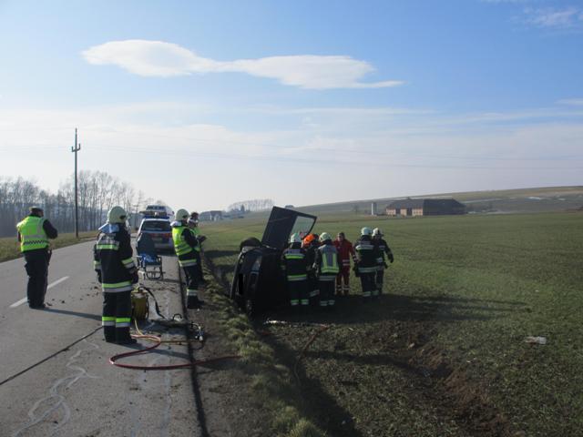 Eine Lenkerin kam mit ihrem PKW in Oberfraunleiten, Fahrtrichtung St. Marien, ins Bankett und geriet so in den Straßengraben. Das Auto überschlug sich und landete auf der Fahrerseite. Die Fahrerin blieb äußerlich unverletzt, konnte sich aber aus eigenen Kräften nicht befreien. Die Einsatzkräfte öffneten die Beifahrertüre und die Verunfallte konnte über eine Leiter sicher ins Freie gebracht werden. Da keine Betriebsstoffe des Unfallfahrzeuges austraten, übernahm die Bergung ein Abschleppunternehmen. Der Einsatz konnte nach rund 50 Minuten wieder beendet werden. Im Einsatz standen 15 Mann der FF St. Florian mit 2 Fahrzeugen (KRF-A und TLF-A 2000) sowie Rotes Kreuz und Polizei.