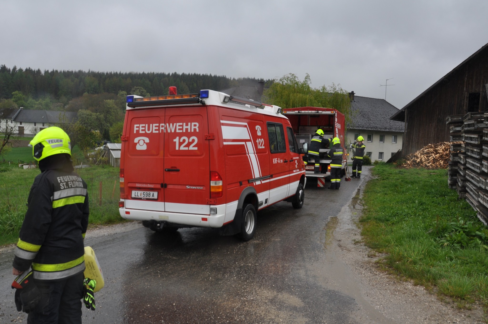 Die Feuerwehr St. Florian rückte mit dem Kleinrüstfahrzeug und dem Transportfahrzeug (LAST) aus. Die Ölspur wurde mittels Ölbindemittel gebunden. Insgesamt standen 12 Mann der Feuerwehr St. Florian Markt rund 1,5 Stunden im Einsatz.