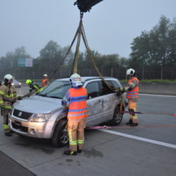 Ein Klein-LKW touchierte kurz vor der Betriebsauffahrt Ebelsberger-Berg die Leitschiene. Der mitgeführte Anhänger mit geladenem PKW kam ins Schleudern und genau auf der Auffahrt zum Liegen. Die alarmierten Feuerwehren des Pflichtbereiches St. Florian stellten den Anhänger gemeinsam mit den Einsatzkräften der BF Linz und der FF Ebelsberg wieder auf. Nach kurzen Reinigungsarbeiten der Fahrbahn konnte der erste Fahrstreifen wieder dem Verkehr freigegeben werden.
